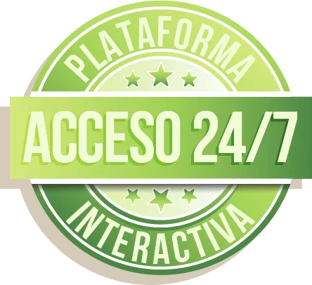Plataforma interactiva con acceso 24/7 a todo el contenido.
